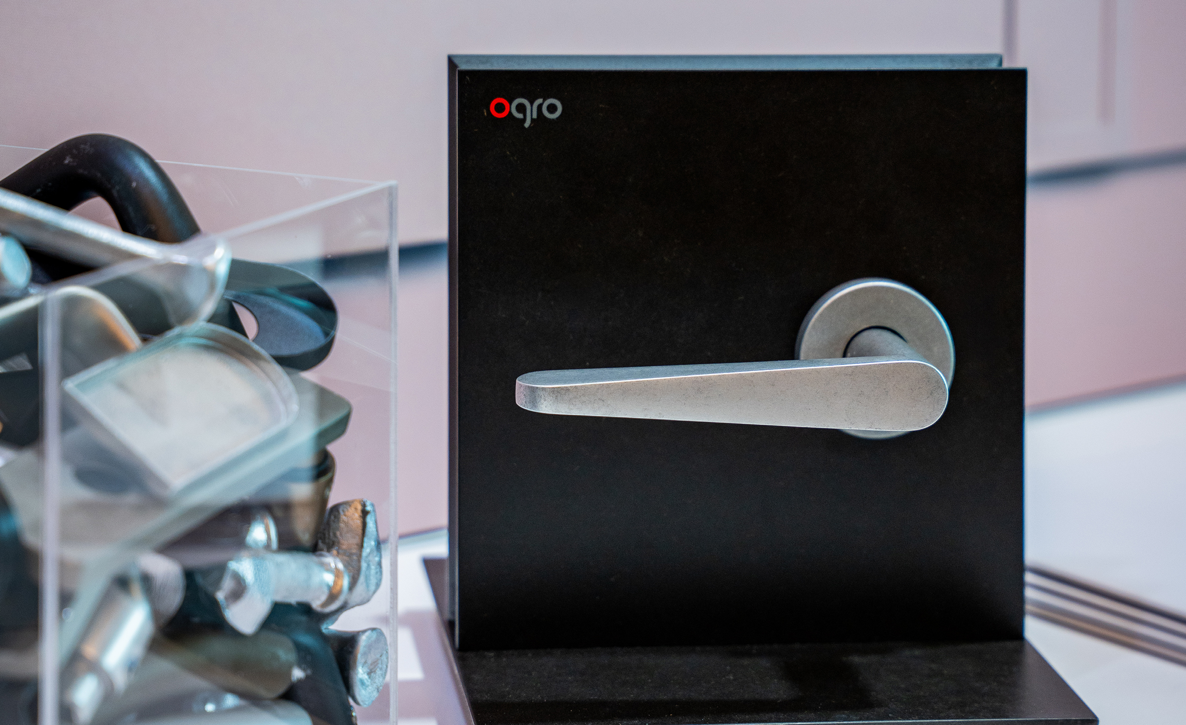 Bei OGRO+DENI bespielt mit Objekttürbeschlägen sinnliche und haptische Aspekte. Neue Maßstäbe setzen die aus Schrott- und Altbeschlägen gefertigten Aluminium-Türdrücker. Die Upcycling-Serie in Manufakturqualität erfüllt ökologische Ansprüche und wird nachhaltigen Architekturkonzepten gerecht.